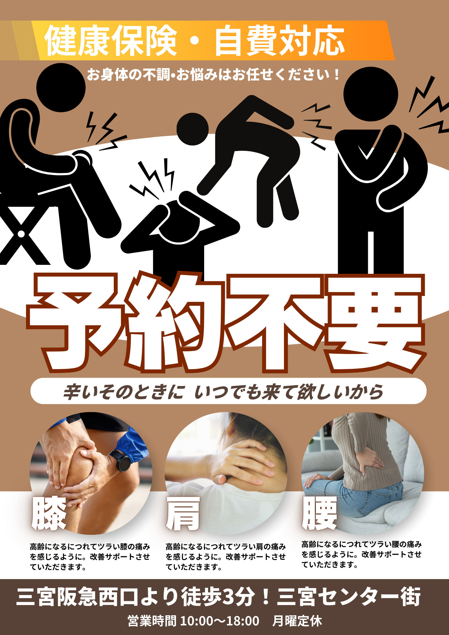 「辛いそのとき」に、今すぐ来て頂きたいという想いから、20年間「予約不要」で施術を行ってきました。お電話も不要なので、営業時間内であればいつでも直接お越しください。